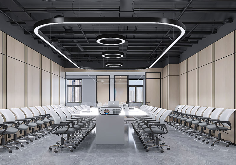 作為濟(jì)南辦公室裝修中產(chǎn)業(yè)園區(qū)辦公空間的代表,聯(lián)東 U 谷以科技為核心,弧形墻體柔化空間線條,淺灰大理石地面搭配嵌入式燈光營造簡潔質(zhì)感;一側(cè)展示墻整合品牌文化與產(chǎn)品信息,另一側(cè)玻璃隔斷的會(huì)議室嵌入科技感燈帶,適配企業(yè)產(chǎn)品展示與商務(wù)洽談,是濟(jì)南辦公室裝修中 “產(chǎn)業(yè)屬性 + 功能展示” 融合的優(yōu)質(zhì)案例。