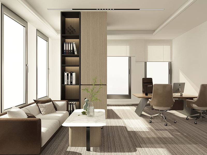 分層照明,營造氛圍層次燈光是輕奢空間的氛圍,需采用分層照明策略:自然光利用:通過大面積玻璃窗、百葉簾等設計,調(diào)節(jié)自然光的進入量,讓空間在明亮中透著柔和,同時借由光影變化豐富空間層次。人工光營造:嵌入式射燈提供基礎(chǔ)照明,保證空間亮度;線性燈帶勾勒空間輪廓,營造柔和氛圍;造型吊燈或長條辦公燈,則作為視覺焦點,來提升設計感與精致度。通過不同燈光的組合,讓空間既滿足辦公的明亮需求,又能在不同場景下切換氛圍。